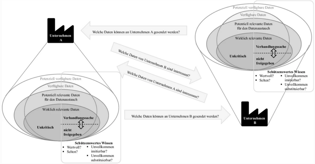 In Zukunft wird die Nachfrage nach dem Austausch von Daten entlang der Wertschöpfungsketten und die Vernetzung dieser miteinander weiter zunehmen. Dabei sollten Unternehmen nicht grundsätzlich eine protektionistische Haltung einnehmen und dem Austausch von Unternehmensdaten per se absagen, da der Austausch von Daten Wertschöpfungspotenziale verspricht. Hierbei ist darauf zu achten, sich einen Teil des Werts der eigenen Daten zu sichern und nicht unbedarft geschäftskritisches Wissen preiszugeben.