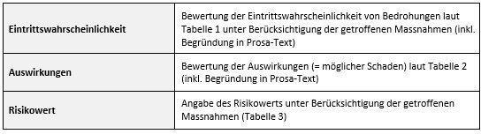 Bei der Bewertung der Eintrittswahrscheinlichkeiten und Auswirkungen sollen alle bisher getroffenen technischen und organisatorischen Massnahmen berücksichtigt werden.