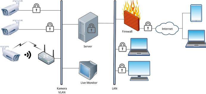 - Unverschlüsselte drahtlose Übertragung der Videodaten zum Server.