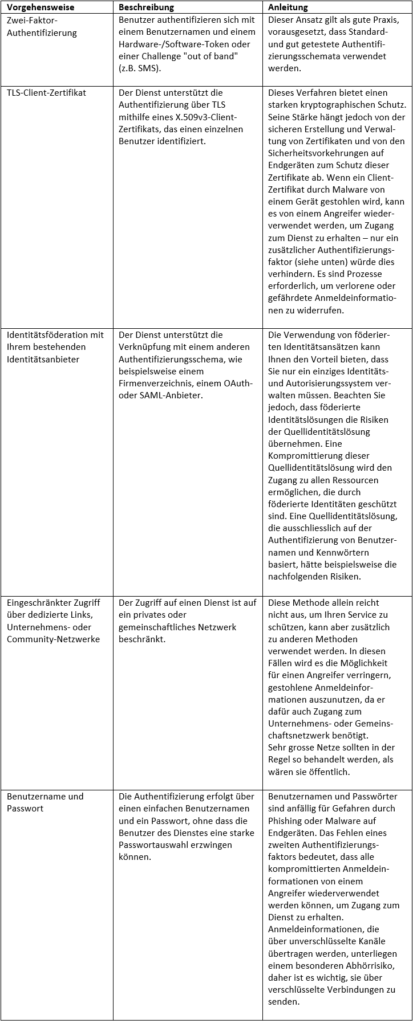 Zusätzliche Hinweise – Authentifizierungsrisiken