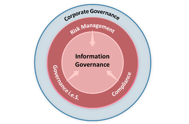 Die unternehmensinterne Information Governance soll im Sinne einer Klammerfunktion übergeordnete Grundsätze und Prinzipien definieren und deren themenübergreifende koordinierte, lückenlose, schrittweise Umsetzung unterstützen. Das Zusammenwirken wichtiger Themenbereiche soll sichergestellt werden. So können auch Redundanzen, Ressourcen und Aufwände reduziert werden.